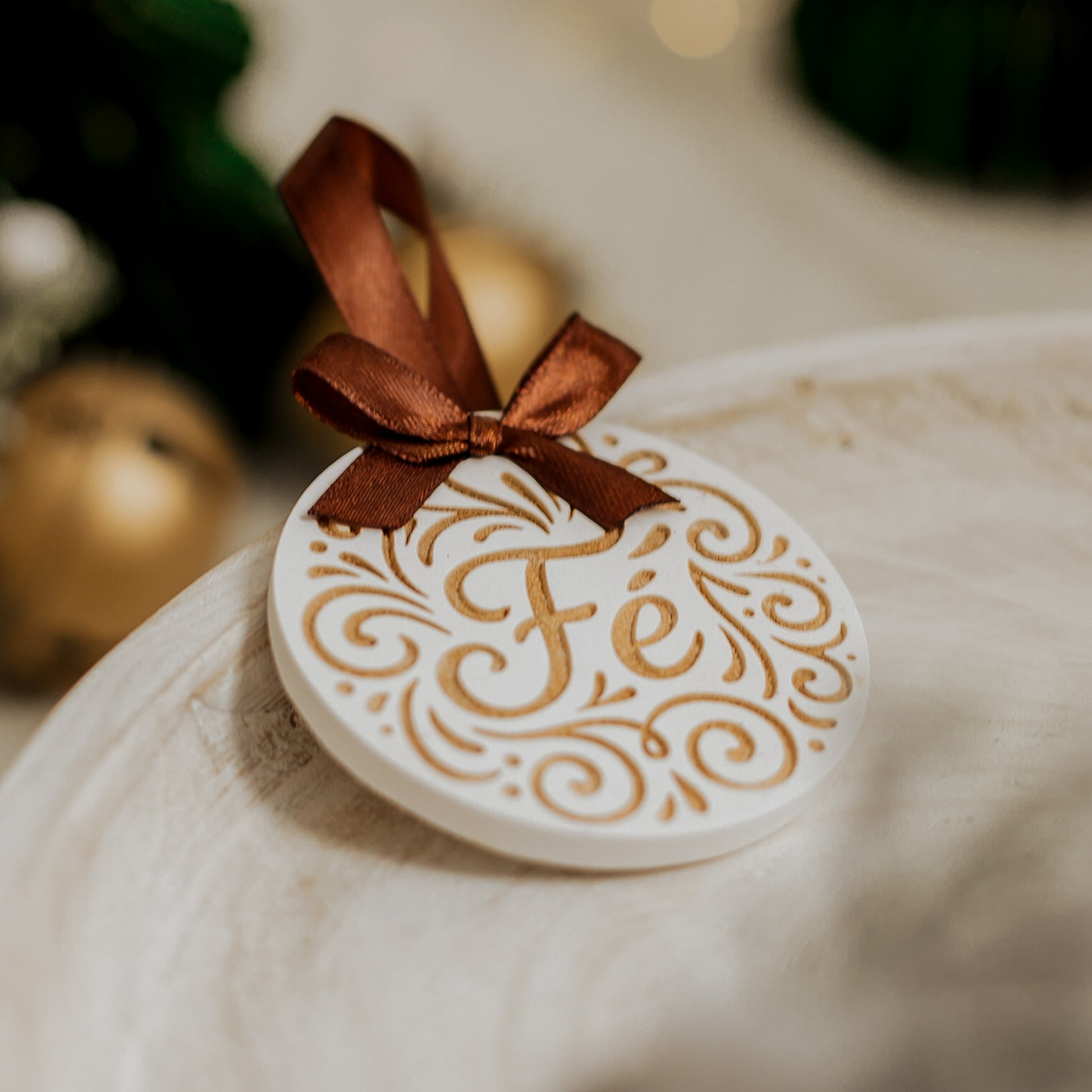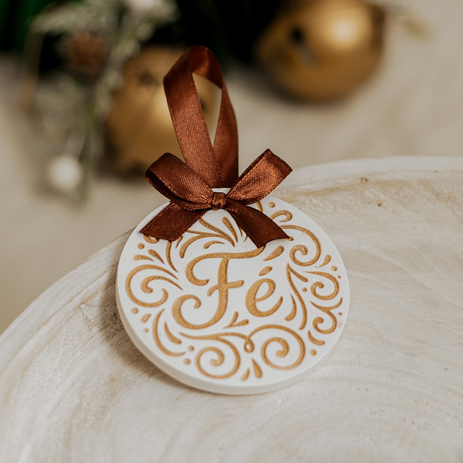 Medalha perfumada “Fé”, com cerca de 7 cm de diâmetro e aroma a talco. Ideal para perfumar e decorar o ambiente nesta época festiva.
